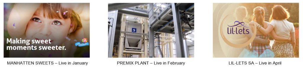 During the first half of 2018, we completed the Premier rollout, with a go-live at Manhattan sweets in January, the Premix plant in February and Lil-Lets South Africa in April.